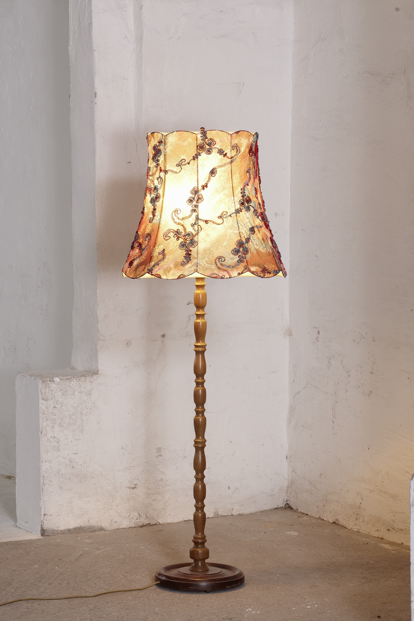 Material: Drahtgestell, Stoff, Holzständer